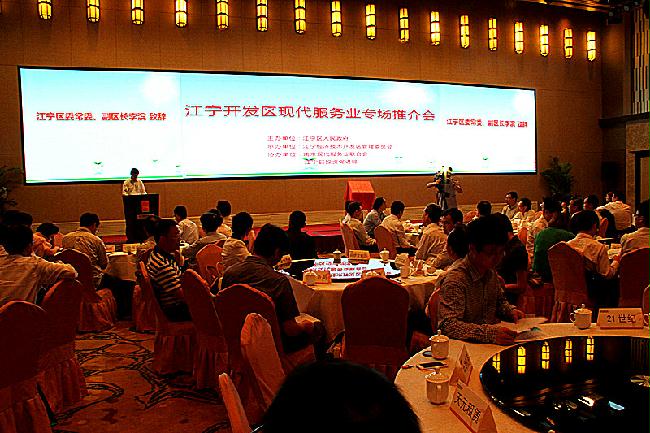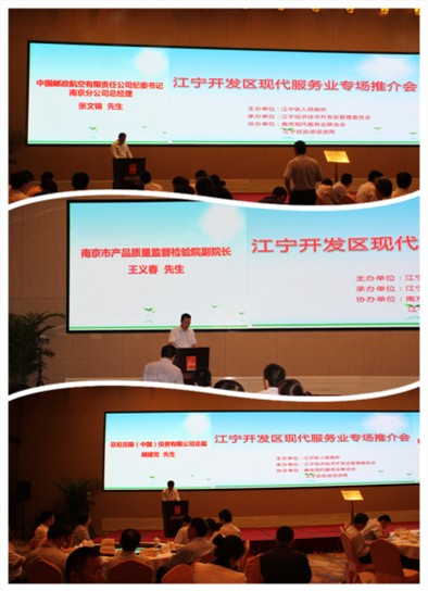 此次活动由江宁区区委常委、江宁开发区常务副主任戴华杰主持,播放完开场介绍动画后,江宁区区委常委、江宁区副区长李滨致开幕词,南京现代服务业联合会会长仇少明介绍江宁区现代服务业发展状况,随后由江宁区区长陈发喜为江宁现代服务业联合会揭牌,江宁开发区投资促进局杜主任作园区现代服务业发展情况介绍,精致的PPT演示为现场嘉宾详尽的介绍了江宁区20年来高速发展带来的新局面。