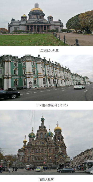 第一站:圣彼得堡。圣彼得堡是俄罗斯第二大城市,整个城市由42个岛屿组成,由360多座桥梁连接起来,由于河渠纵横、岛屿错落、风光旖旎,素有“北方威尼斯”之称。这里有美丽的涅瓦河、童话般的欧式风格建筑及各式各样金壁辉煌的宫殿。在当地导游的热情接待和指引下中汇江苏合伙人对这座美丽城市进行观光和游览。大巴车行驶在莫斯科大街上开进了圣彼得堡市中心区域,映入眼帘的是巴洛克和洛可可风格的冬宫、坐落在圣彼得堡市中心涅瓦河右岸彼得堡罗要塞及矗立在要塞里面的秀丽黄金尖顶的彼得保罗教堂,还有雄伟壮观的圣埃撒大教堂(金顶大教堂)让所有人目不暇接。导游引领我们参观了优雅豪华、华丽无比的叶卡捷琳娜花园(冬宫)和彼得宫殿(夏宫),亚历山大二世被刺杀的地方—滴血大教堂和雄伟壮丽的喀山大教堂。每个景点及美景都让大家流连忘返,回味无穷。