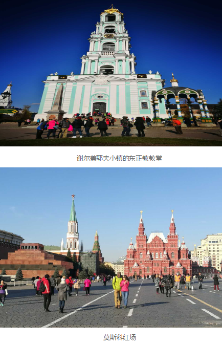 10月的莫斯科,已经进入了深秋,到处是绿、黄、红等颜色的景色,特别养眼,让人心旷神怡。导游带领大家先去了莫斯科郊外的谢尔盖耶夫小镇,谢尔盖耶夫小镇是俄罗斯东正教的圣地,是俄罗斯最大的修道院之一。小镇美奂绝伦,教堂蓝顶白墙。代表东正教洋葱头式的房顶非常漂亮。最后大家去了莫斯科汇集权利、经济的中心—红场。红场坐东向西,东为克里姆林宫的红墙,中央是2层高的阅兵台,台下是列宁墓,广场南面是具有东正教的著名教堂—瓦西里教堂。北面有一红色的建筑—国家博物馆,博物馆前竖立着抗击法西斯二战英雄—朱可夫元帅的雕像。