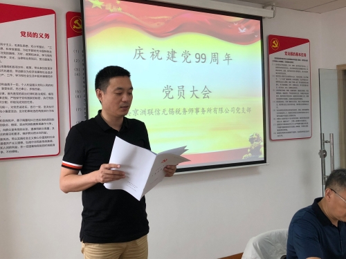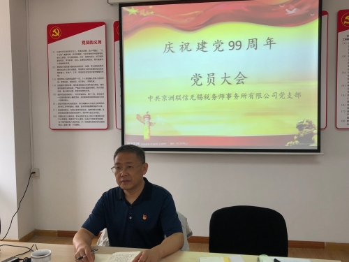6月30日,京洲联信无锡税务师事务所党支部召开庆祝建党99周年主题党日活动。