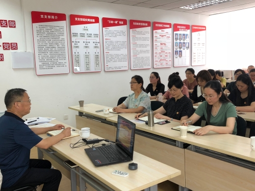 支部书记费亚林首先从三会一课开展、支部特色活动创建、促进企业发展等方面的各项工作进行汇报,全面总结党支部半年来的工作情况,并提出下半年的工作思路和改进举措。支部书记还给大家上了一堂题为《从疫情防控看中国共产党的先进性战斗力》的党课。以近期疫情防控的时事联系中国共产党的领导,向在座党员们展开分析中国国产党的战斗力是如何发挥作用的,中国共产党始终代表着广大人民群众的根本利益,是一个“使命担当党”。