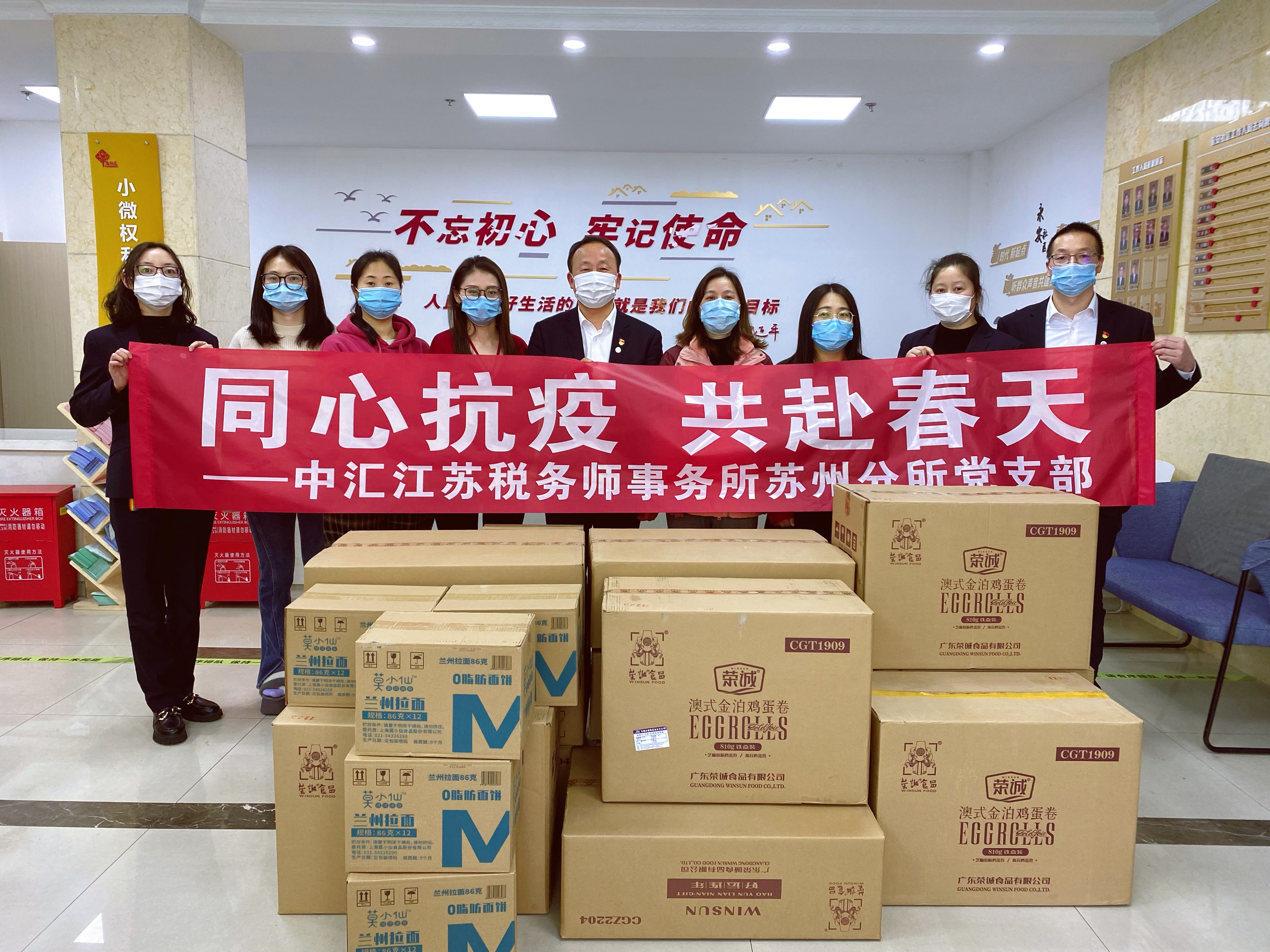 2月26日一大早,中汇江苏税务师事务所苏州分公司党员在党支部书记曹承宝带领下,载着价值两万多元的防疫物资,来到张家港市公安局乘航派出所,在这春寒料峭的日子里为抗疫工作者送上融融暖意。