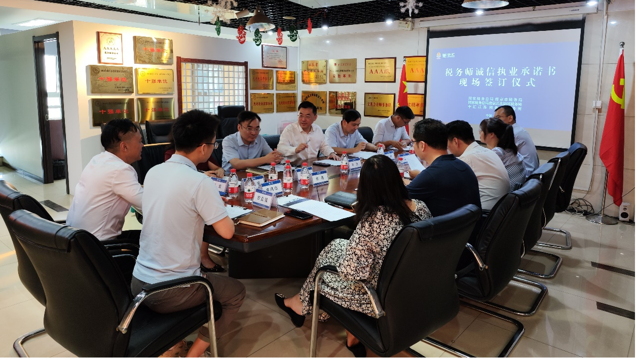 随后,在魏军波等税务局领导的见证下,孙洋等税务师代表现场签订了《税务师诚信执业承诺书》。