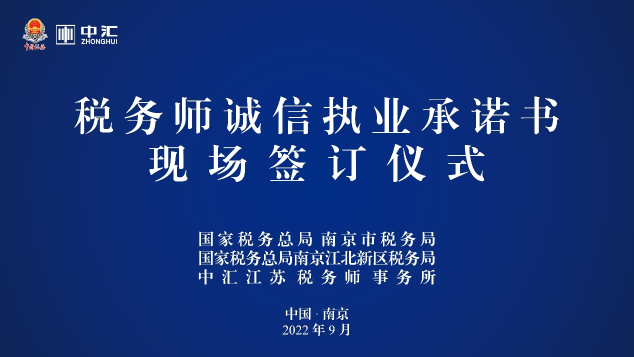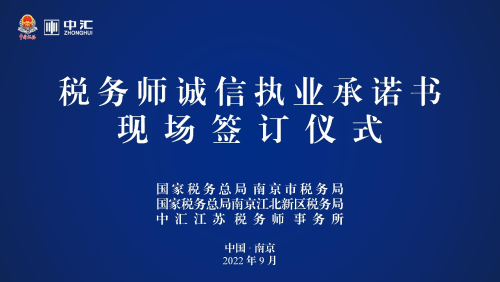 南京市税务局、江北新区税务局与中汇江苏税务师事务所联合开展《税务师诚信执业承诺书》现场签订仪式活动