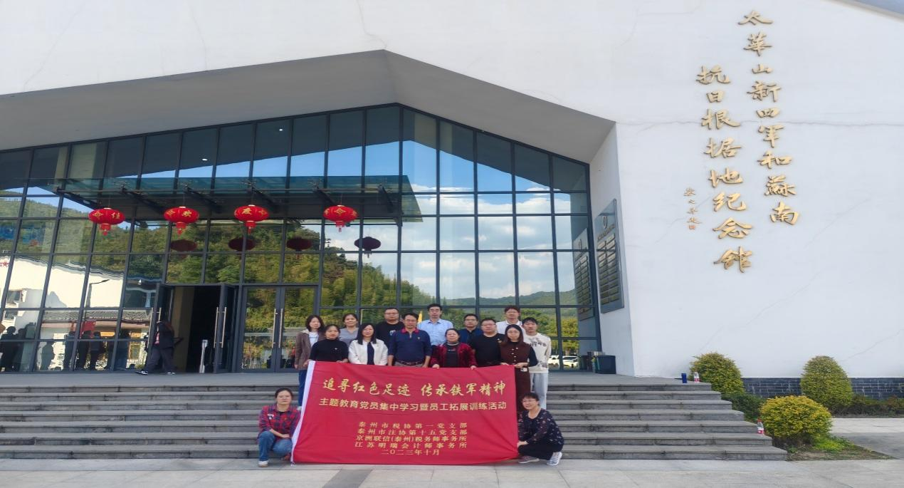为了深入贯彻学习落实党的二十大精神和习近平新时代中国特色社会主义思想,进一步增强基层党组织政治功能和组织功能以及党员的党性修养和政治觉悟。泰州市税务师行业第一党支部与第十五党支部来到宜兴太华山新四军和苏南抗日根据地纪念馆,联合开展“追寻红色足迹 传承铁军精神”主题教育活动。