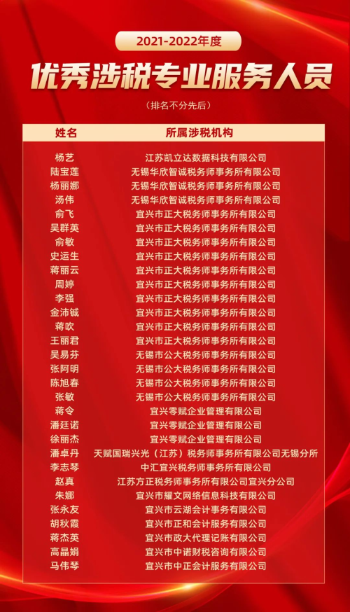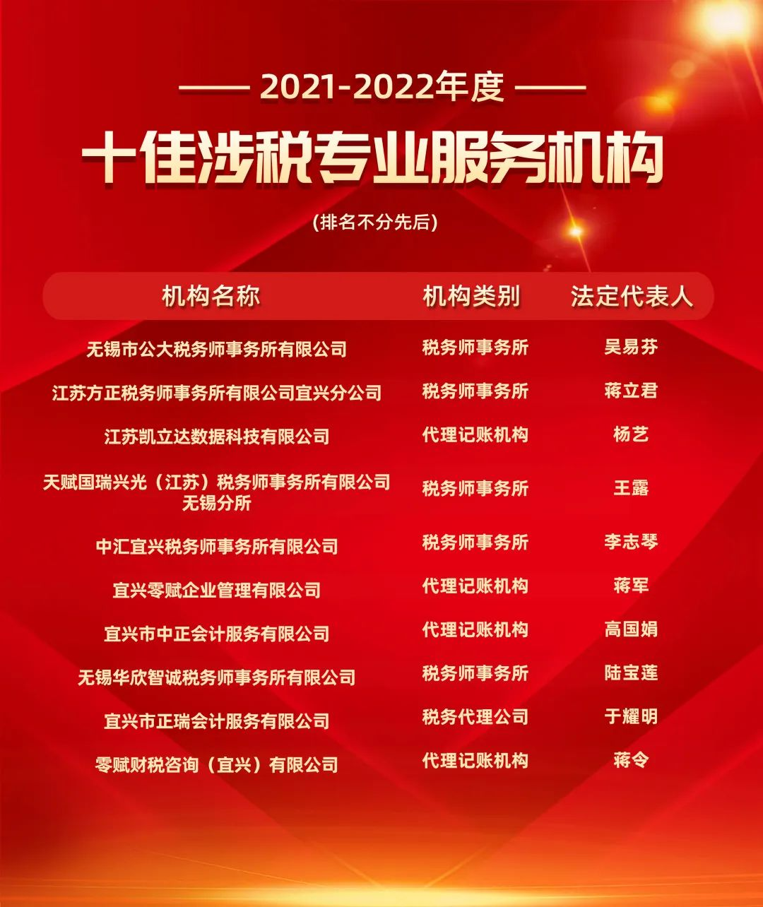 5家税务师事务所获评宜兴市十佳涉税专业服务机构