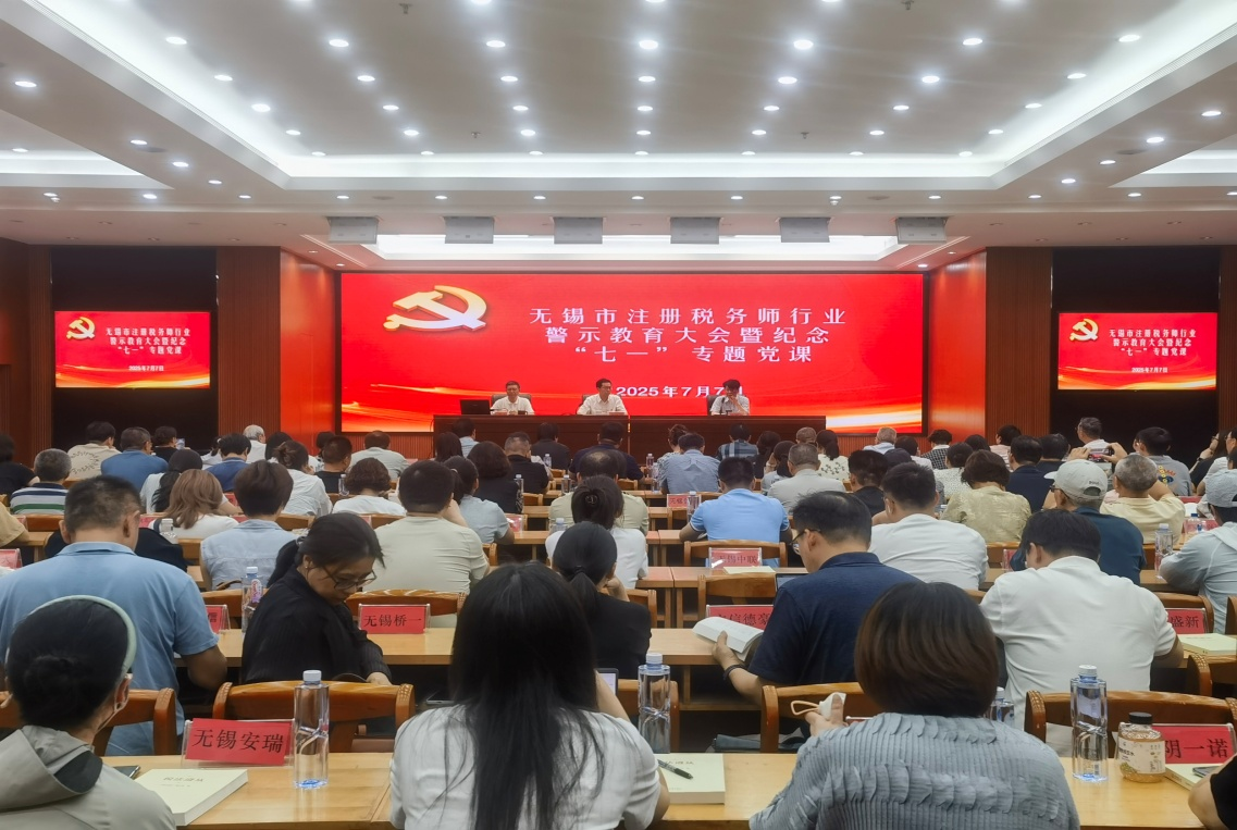 7月7日,无锡市注册税务师行业党委召开了全市注税行业警示教育大会暨纪念“七一”专题党课,以此纪念建党104周年。全体行业党委委员、各党支部委员、各会员所所长,新发展党员等一百多人参加了会议,行业党委专职副书记浦耀平主持会议。